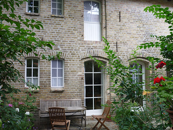 Die 2 Ferienwohnungen, FeWo A und B, sind eingerichtet in einem renovierten und ausgebauten Stallgebäude im denkmalgeschützten Ensemble der alten Dorfschule (1865) auf dem Dorfanger von Werder. Die Bilder zeigen den kleinen Sitzplatz im Grünen vor FeWo A, den Blick auf den ehemaligen Schulgarten und die Außenansicht von FeWo B. Haustiere sind willkommen.